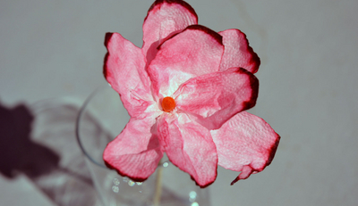 - Stil blomsten i en lille skål med vand. Lad bladene suge vandet op, så farven spreder sig til hele blomsten (det tager ca. 10-15 minutter).