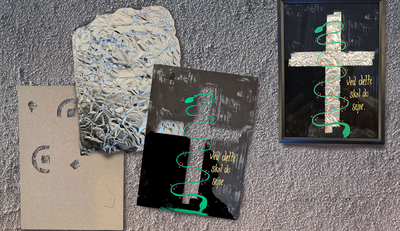 Lav et effektfuldt billede, hvor fjernet malertape gør, at man kan se sølvpapiret bagved.